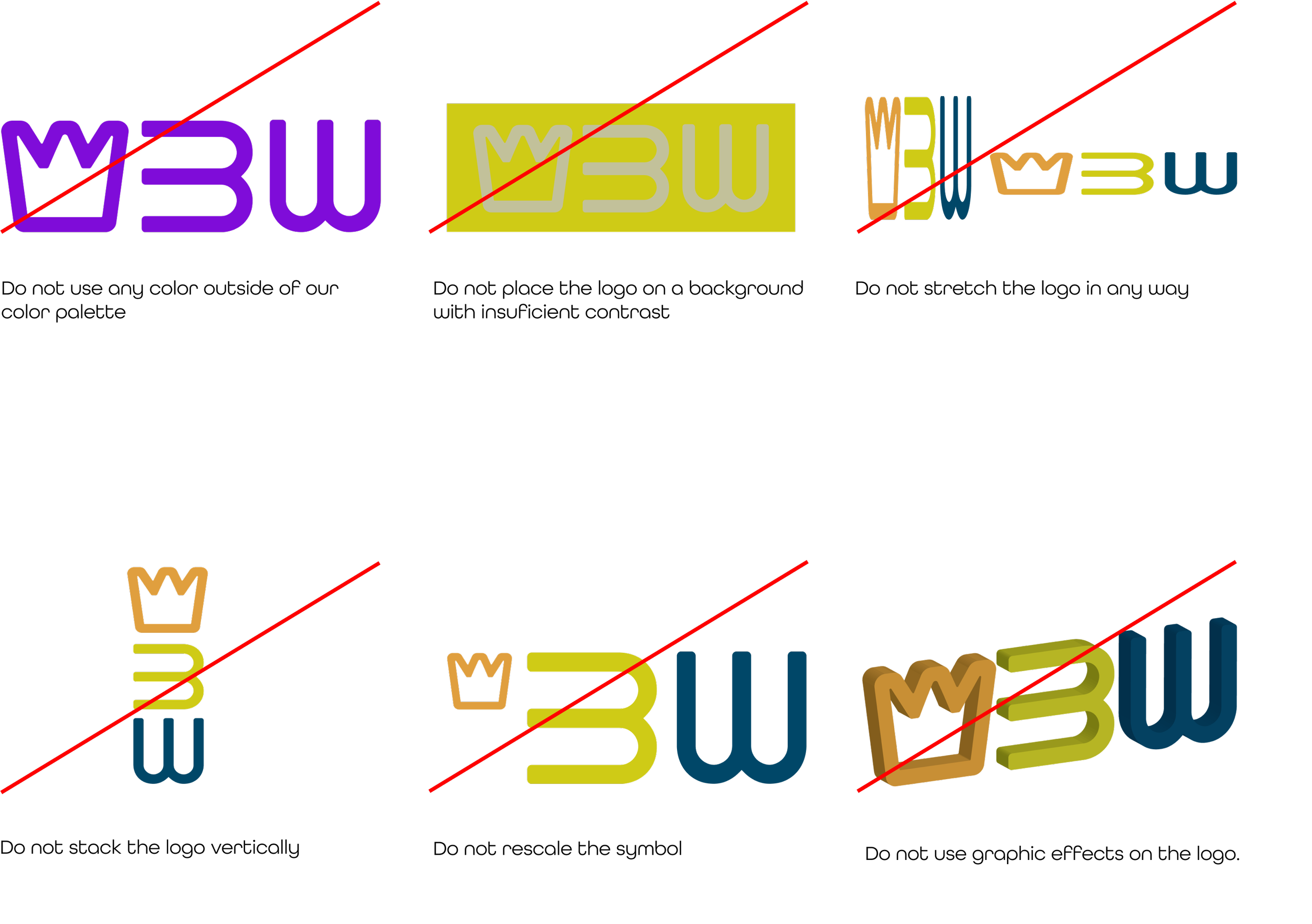 The composition of our logo and the representation of its components and colors were designed with a specific purpose and should not be altered. This page illustrates some incorrect uses of the logo.